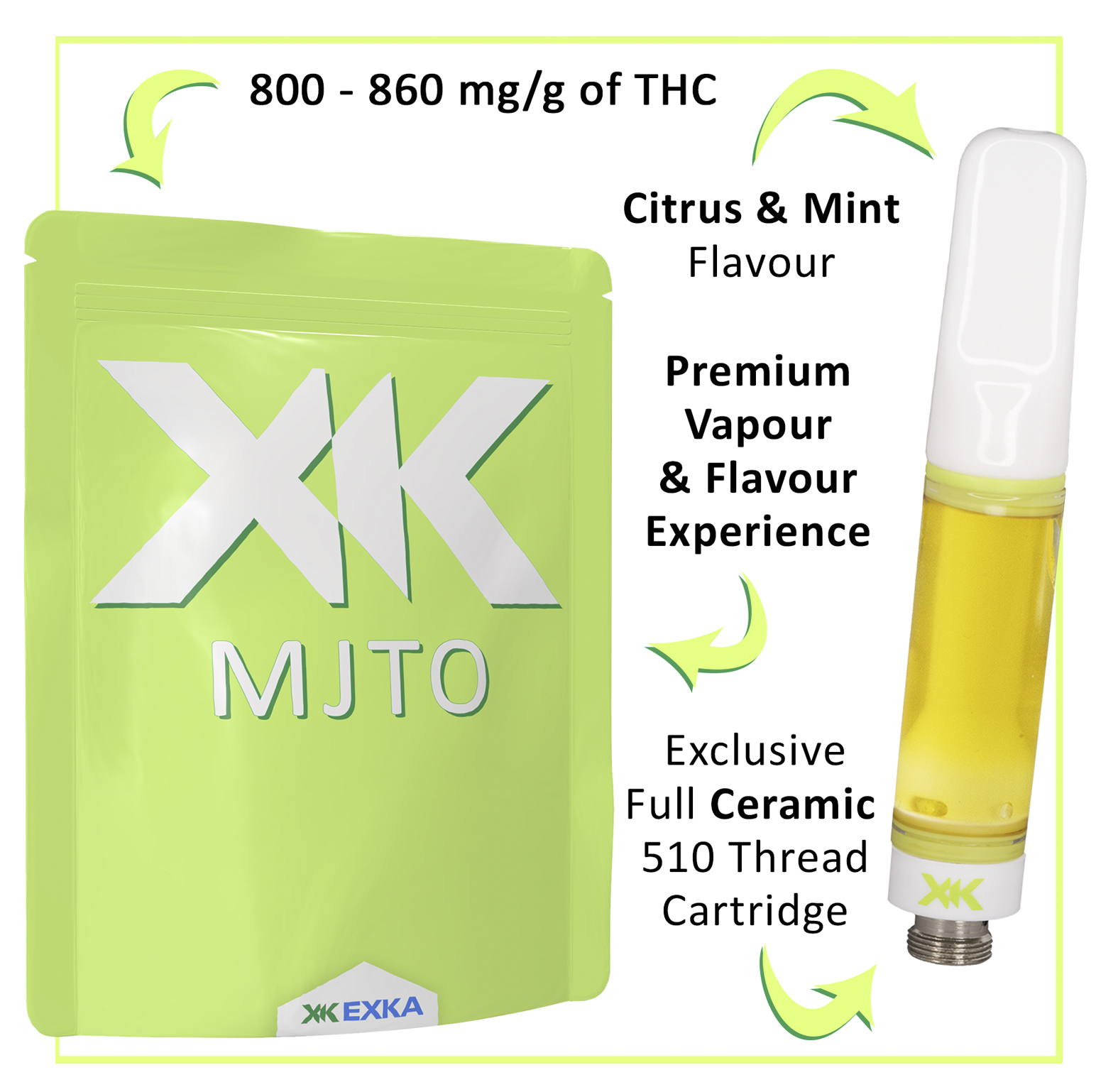 Our MJTO cartridge offers an intense and refreshing taste of lime, mint and citrus. With a THC content of 85.6%, MJTO was designed for the discerning cannabis consumer. It generates a flavourful, aroma-filled experience at a great price for the highest purity THC distillate while avoiding the bitter aftertaste of raw oil. EXKA uses Verified’s top-of-the-line Ceramic 510 thread Ghost cartridge.